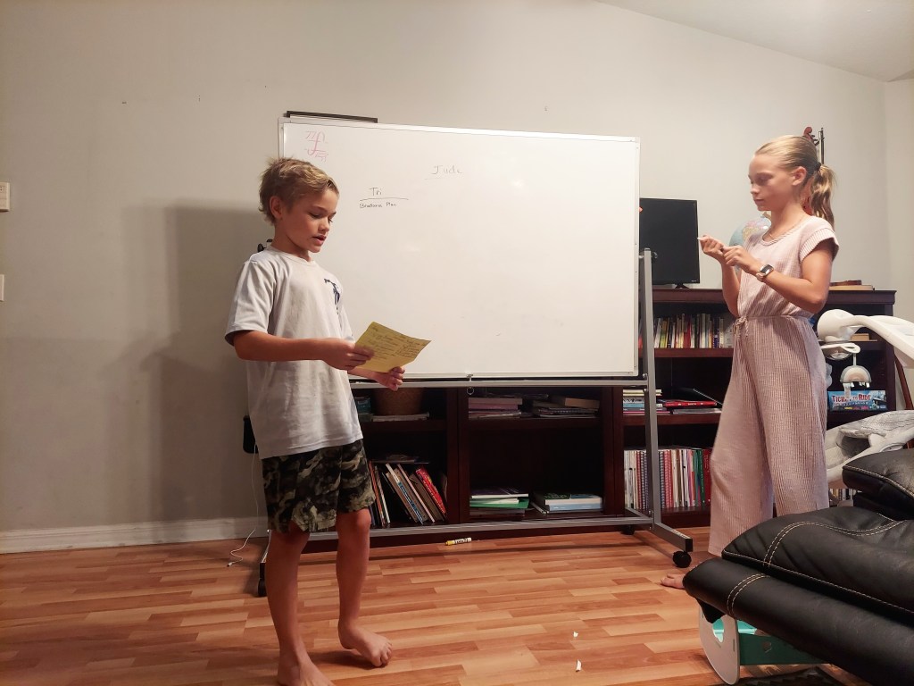 A final note – our assemblies have changed a lot just over the last four years as our kids have gotten older. And when our kids were very young, we didn’t have assemblies. During our first year of assemblies our kids were ages 11, 9, 6, 3, and 1.5. As they’ve gotten older, we’ve changed the format and content to accommodate a range of ages.